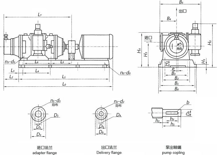 2GC、2LB雙螺桿泵及泵組外型和安裝尺寸表