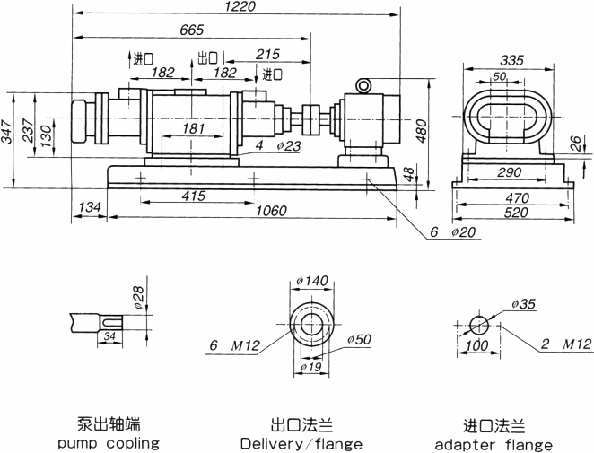 2LB35-440泵及泵組外型和安裝尺寸圖(保留機(jī)型)